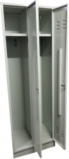Méret: 1800×600×500 mm (ma×szé×mé) Súly: 46 kg Lv.: 0,7-1,0 mm porszórt felület: vízálló, mérsékelten vegyszerálló hengerzárral záródó ajtók, záranként 2 kulcs 1 egység felszereltsége: 1 polc, 1 mándlirúd, 2 akasztó szellőzőkopoltyúk alul és felül, névtábla/sorszám helye a felső szellőzők felett Színvariációk: Szürke RAL7035