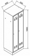 Méret: 1850×890×500 mm (ma×szé×mé) Súly: 56 kg Lv.: 0,7-1,0 mm porszórt felület: vízálló, mérsékelten vegyszerálló hengerzárral záródó ajtók, záranként 2 kulcs 1 egység felszereltsége: 1 polc, 1 mándlirúd, 2 akasztó szellőzőkopoltyúk alul és felül, névtábla/sorszám helye a felső szellőzők felett