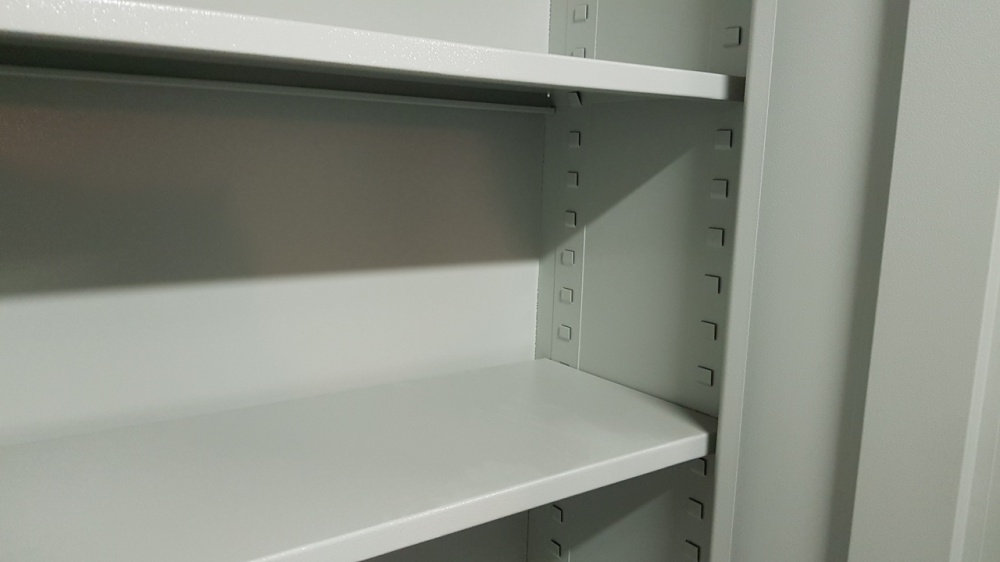 Méret: 1920×1100×580 mm (ma×szé×mé) Súly: 85 kg Lv.: 0,7-1,5 mm középről nyíló ajtók, biztonsági zárral, 2 kulccsal 4 db polccal, polctávolság szabadon beállítható polcok terhelhetősége: 50 kg, egyenletes súlyeloszlás esetén Színvariáció: kék RAL5015 szekrénytest / szürke RAL7001 ajtók